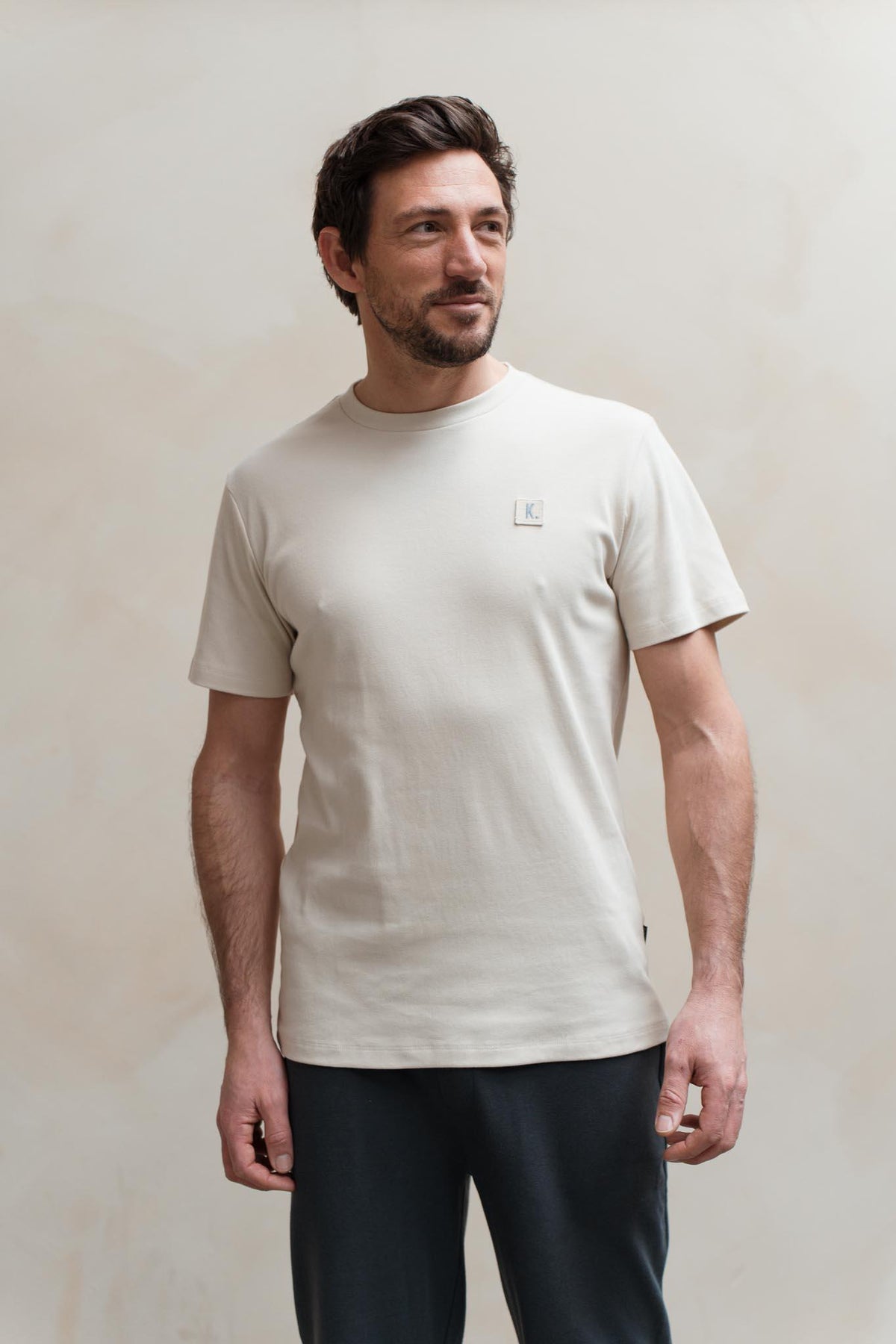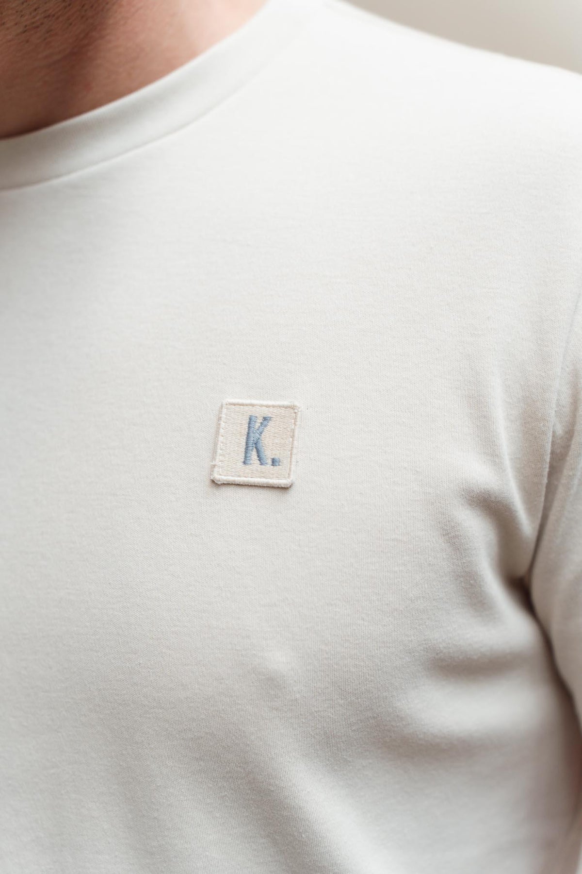 This `Lofi' Tshirt has a small contrasting patch on the chest with our signature stitched K. logo. The short-sleeved crewneck style is cut in a regular fit, made from certified organic cotton. The cuffs and folded hem feature two-needle stitching.